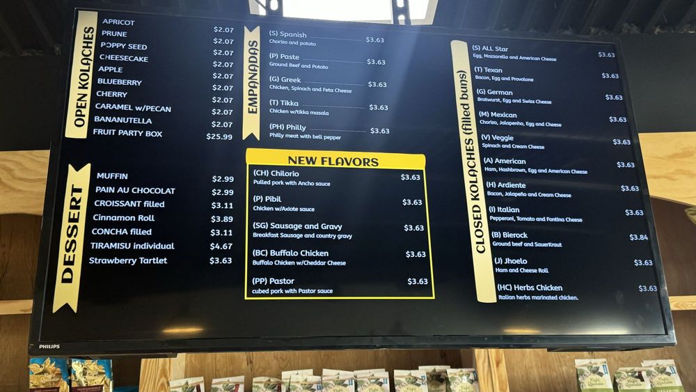 The standout dish is undoubtedly their kolaches, which come in around 20 different flavors. From spicy Mexican chorizo to savory veggie options, each bite boasts incredible freshness and flavor. Additionally, their crepes—such as the Roman Crepe with chicken and cheese, or the Nutella Crepe—are a sweet treat worth indulging in.